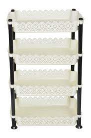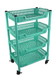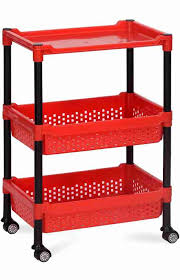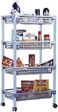 Durability: Made of high-quality plastic material, this trolley is designed to withstand daily use and resist wear and tear. It can hold a significant amount of weight without compromising its structural integrity. Easy to Move: The trolley is equipped with wheels, allowing you to transport it effortlessly from one place to another. This feature comes in handy when cleaning or rearranging your kitchen or pantry.
